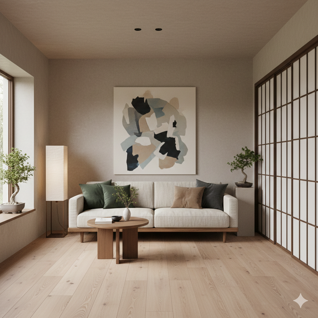 「和(Japanese)」と「北欧(Scandinavian)」をミックスしたスタイル。木目の温かみと、グレーやベージュ(グレージュ)を基調としたシンプルで洗練された空間が人気です。